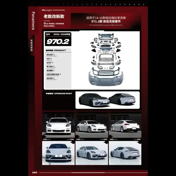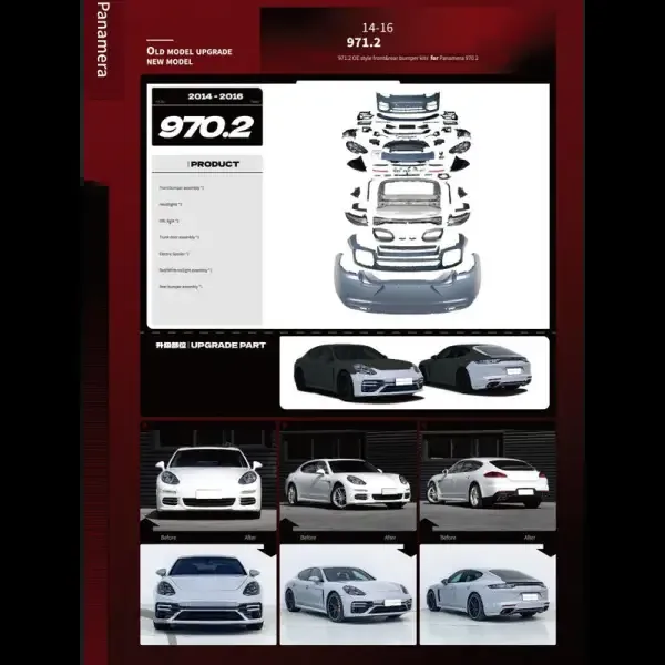 COMPATIBLE WITH PORSCHE PANAMERA 970.2 2014-2016 UPGRADE FACELIFT BUMPER BODYKIT CONVER TO 971.2 2021-2023 FRONT AND REAR