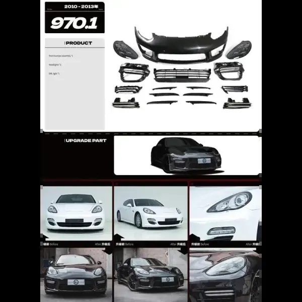 COMPATIBLE WITH PORSCHE PANAMERA 970.1 2010-2013 UPGRADE FACELIFT BUMPER BODYKIT CONVERT TO 970.2 2014-2016 FRONT