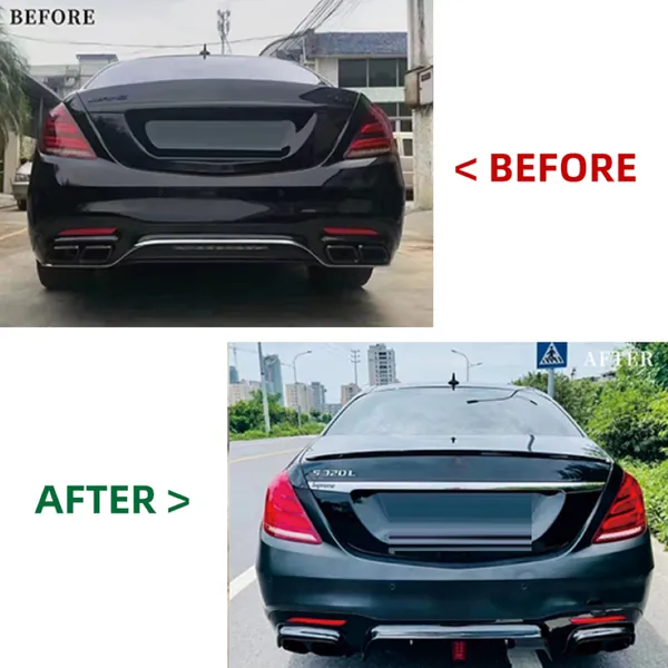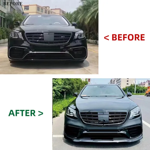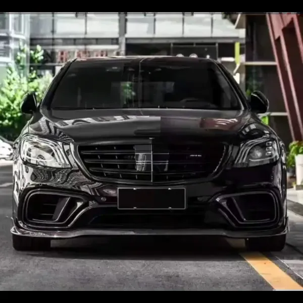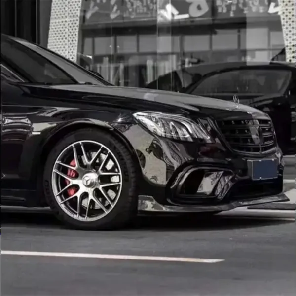 COMPATIBLE WITH MERCEDES BENZ S CLASS W222 2014-2017 UPGRADE FACELIFT CONVERSION BODYKIT BRABUS KIT FRONT LIP SKIRTS DIFFUSER CARBON FIBER