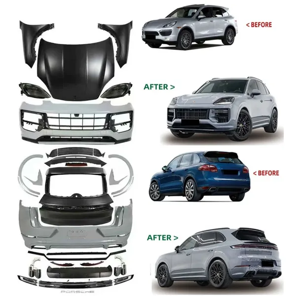COMPATIBLE WITH PORSCHE CAYENNE 9Y0.1 2018-2023 TO 2024 9Y0.2 UPGRADE FACELIFT CONVERSION BODYKIT BUMPER HOOD TRUNK HEADLIGHT TAILLIGHT