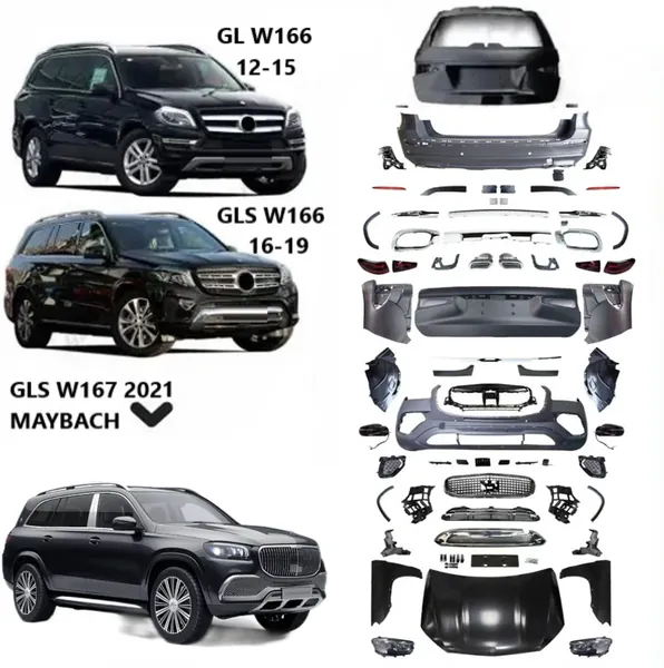 COMPATIBLE WITH MERCEDES GL GLS W166 X166 2012-2016 UPGRADE FACELIFT CONVERT TO GLS W167 X167 2021 MAYBACH KIT BUMPER GRILL HEADLIGHT TAILLIGHT TRUNNK FENDER BODYKIT