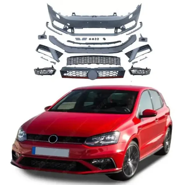 Upgrade Facelift Convert To Gti Line Style Front Bumper Bodykit Fog Lamp Light Grill Mesh Front CC-7222 Compatible With Vw Volkswagen Polo 2010-2024