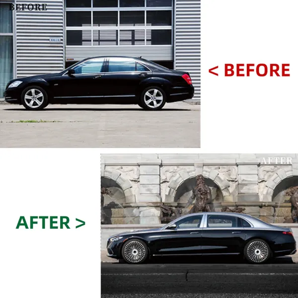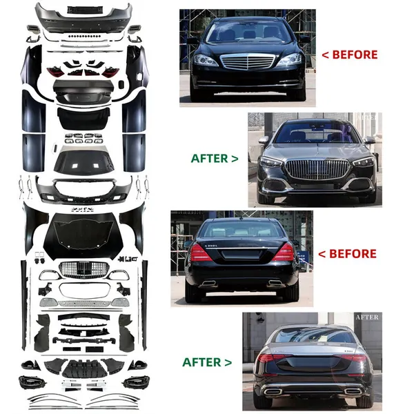 Upgrade Facelift Convert To W223 2024 Lci Maybach Bumper Bodykit Hood Fender Skirts Headlight Taillight Glass With Door 1:1 CC-8553-10 Compatible With Mercedes Benz S Class W221 2006-2014