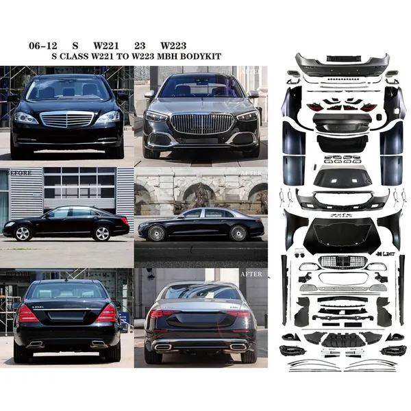 COMPATIBLE WITH MERCEDES BENZ S CLASS W221 2006-2014 UPGRADE FACELIFT CONVERT TO W223 2024 LCI MAYBACH BUMPER BODYKIT HOOD FENDER SKIRTS HEADLIGHT TAILLIGHT GLASS WITH DOOR 1:1 CC-8553-10