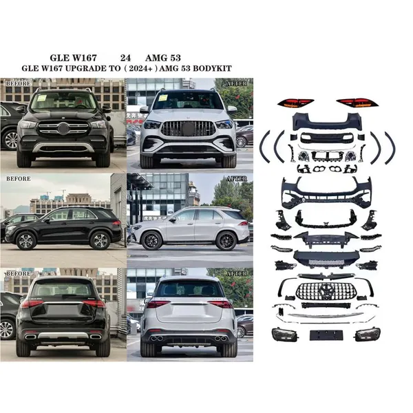 COMPATIBLE WITH MERCEDES BENZ GLE W167 2020-2023 UPGRADE FACELIFT COVERT TO 2023+ GLE53 LCI AMG BODYKIT BUMPER GRILL DIFFUSER HEADLIGHT TAILLIGHT HOOD FENDER AFTER LIP 1:1