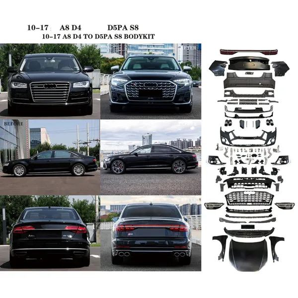 COMPATIBLE WITH AUDI A8 D4 2010-2017 TO 2018+ S8 D5PA UPGRADE FACELIFT MATRIX CONVERSION BODYKIT BUMPER HOOD TRUNK HEADLIGHT TAILLIGHT
