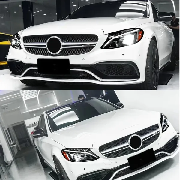 Upgrade Front Bumper Amg C63 Show Grill With Camera Hole Amg Silver Chrome Gc W205/c205-007 W Hole CC-9497 Compatible With Mercedes Benz C Class W205 C205 Coupe 2019-2021