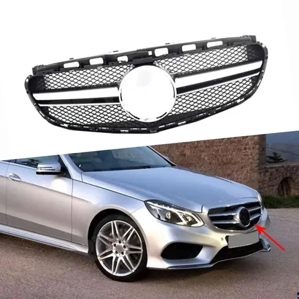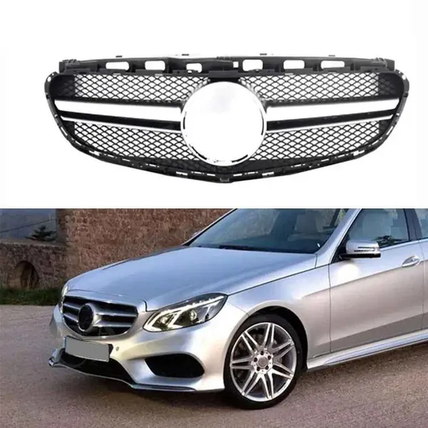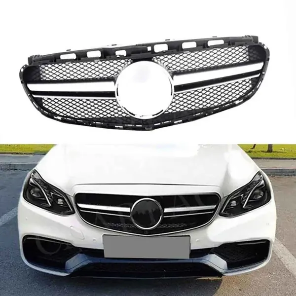 Compatible With Mercedes Benz E Class W212 Lci 2014-2016 Upgrade Front Bumper Amg Show Grill Silver Gc W212-003