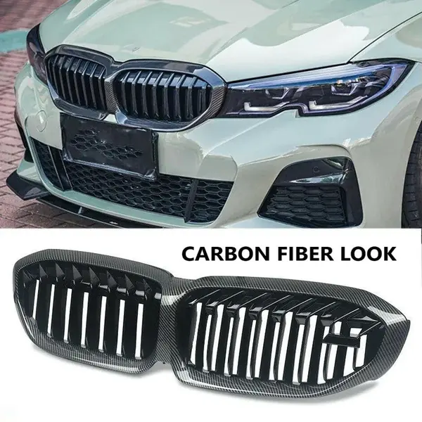 COMPATIBLE WITH BMW 3 SERIES G20 2019-2022 UPGRADE FRONT BUMPER SHOW GRILL CARBON FIBER LOOK