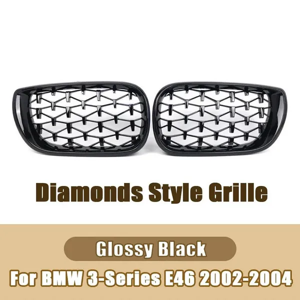 COMPATIBLE WITH BMW 3 SERIES E46 LCI 2001-2004 UPGRADE FRONT BUMPER SHOW GRILL DIAMOND BLACK 2 DOOR