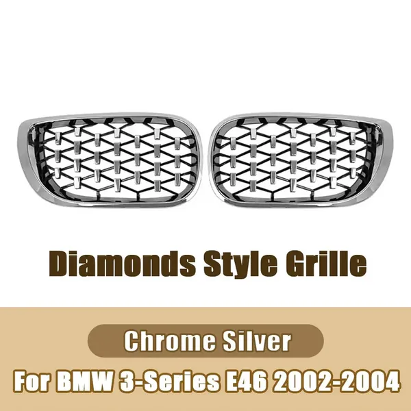 Upgrade Front Bumper Show Grill Diamond Chrome 2 Door CC-9146 Compatible With Bmw 3 Series E46 Lci 2001-2004