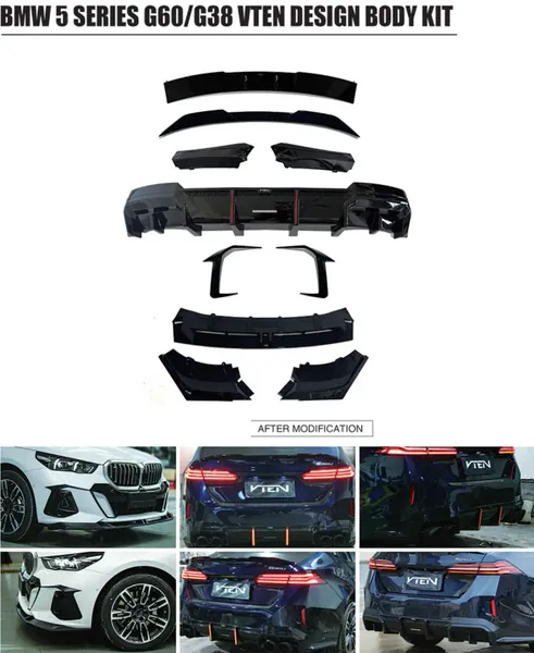 Upgraded Bodykit Body Kit Skirts Splitter Front Rear Lip Diffuser Side Skirts Spoiler Trims Cannards Vten Style CC-9082 Compatible With BMW 5 Series G60 LCI 2024 M Sport M5 Front Bumper