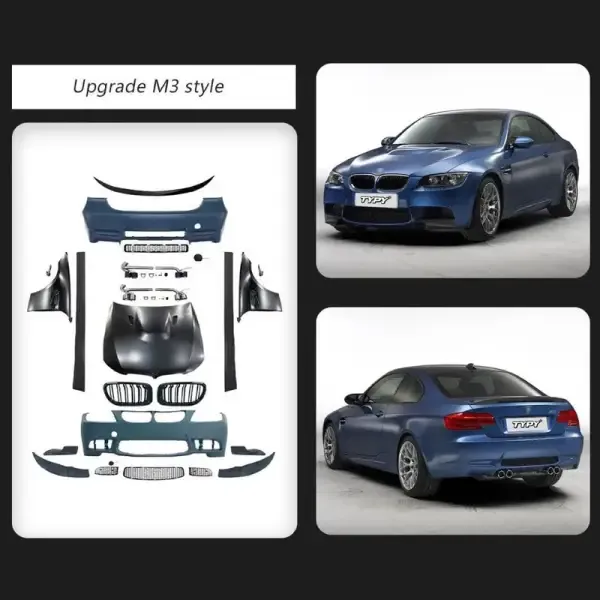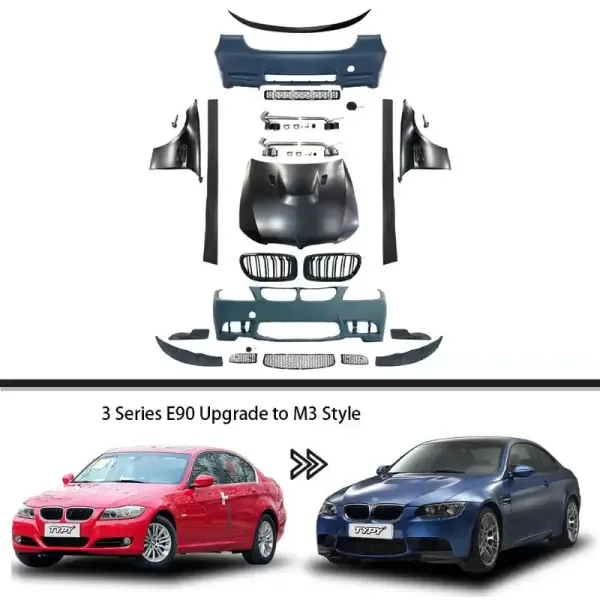 COMPATIBLE WITH BMW 3 SERIES E90 2008-2012 LCI UPGRADED BODYKIT FACELIFT TO E90 M3 M SPORTS BODY KIT BUMPER FENDER HOOD EXHAUST SPOILER LIP SIDE SKIRTS
