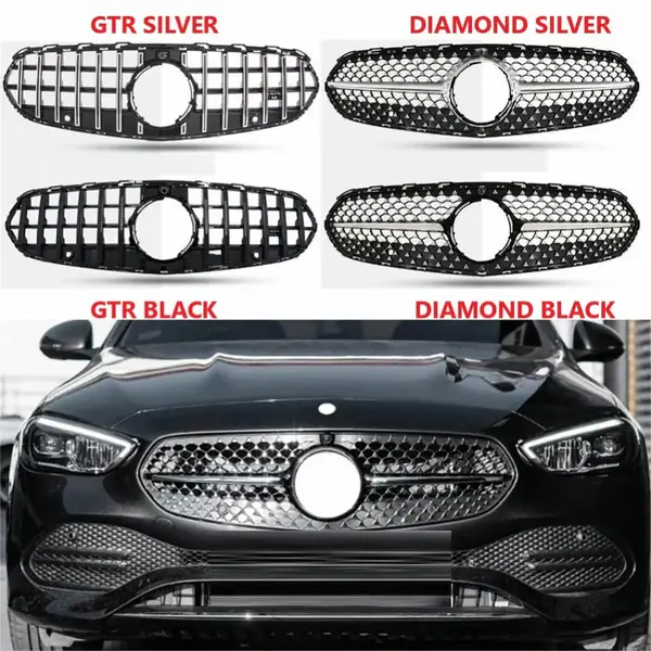 Upgraded Front Bumper Racing Mesh Show Grille With Camera Hole Diamond Black CC-7255 Compatible With Mercedes Benz C Class W206 C206 2023