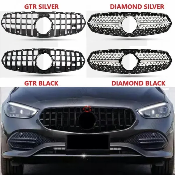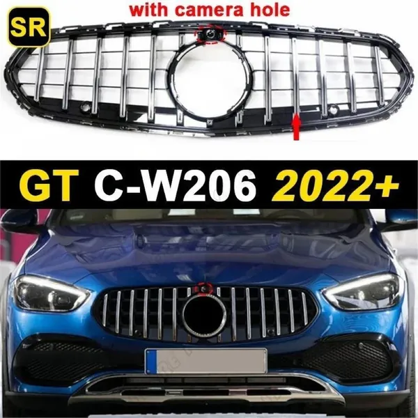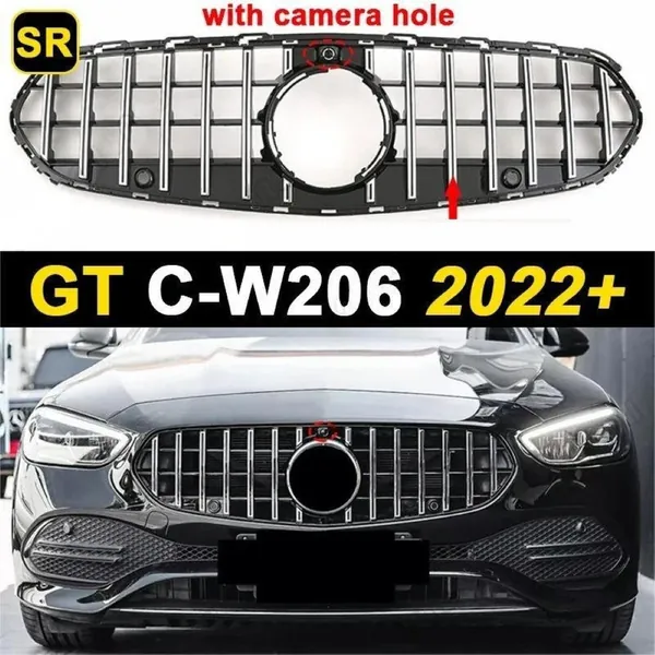 Upgraded Front Bumper Racing Mesh Show Grille With Camera Hole Gtr Silver CC-7254 Compatible With Mercedes Benz C Class W206 C206 2023