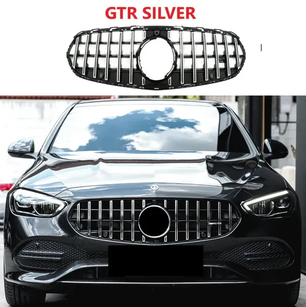 COMPATIBLE WITH MERCEDES BENZ C CLASS W206 C206 2023 UPGRADED FRONT BUMPER RACING MESH SHOW GRILLE WITH CAMERA HOLE GTR SILVER