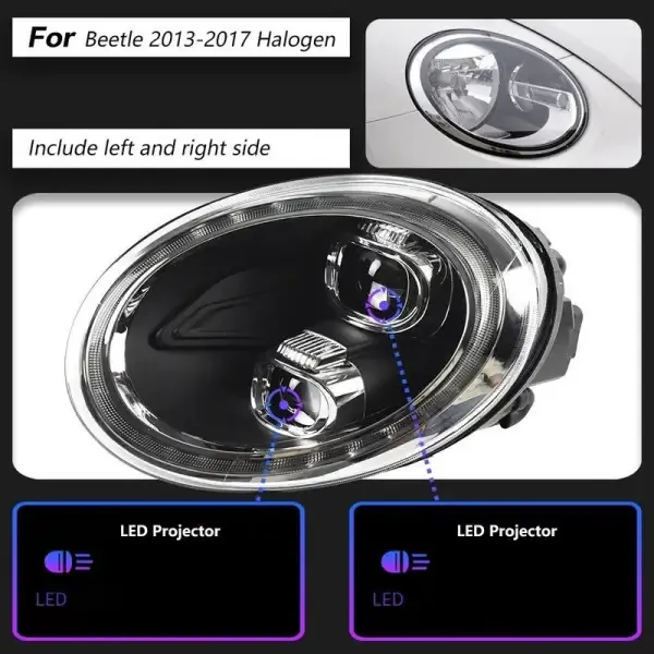 COMPATIBLE WITH VOLKSWAGEN VW BEETLE 2013-2021 UPGRADED HEAD LIGHT LAMP XENON HEADLIGHT RETROFIT UPGRADE MODIFIED LED DRL HID B