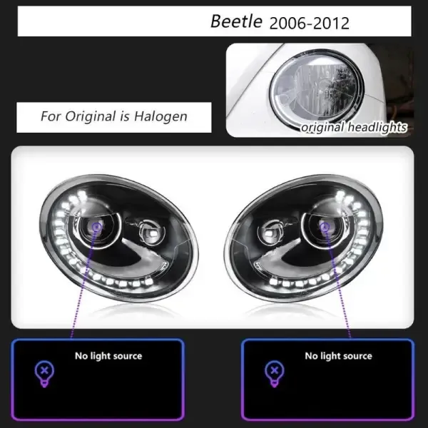 Upgraded Head Light Lamp Xenon Headlight Retrofit Upgrade Modified Led Drl Hid C CC-5319 Compatible With Volkswagen Vw Beetle 2008-2012