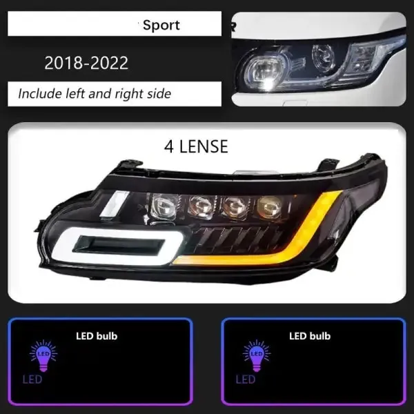 COMPATIBLE WITH RANGE LAND ROVER SPORTS 2018-2022 L494 UPGRADED HEAD LIGHT LAMP XENON HEADLIGHT RETROFIT UPGRADE MODIFIED LED DRL HID