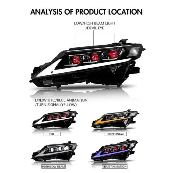 Upgraded Head Light Lamp Xenon Headlight Retrofit Upgrade Modified Led Drl Hid L Style CC-5614 Compatible With Toyota Camry 2018-2024 8th Generation Car Front