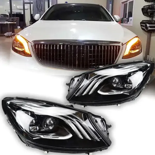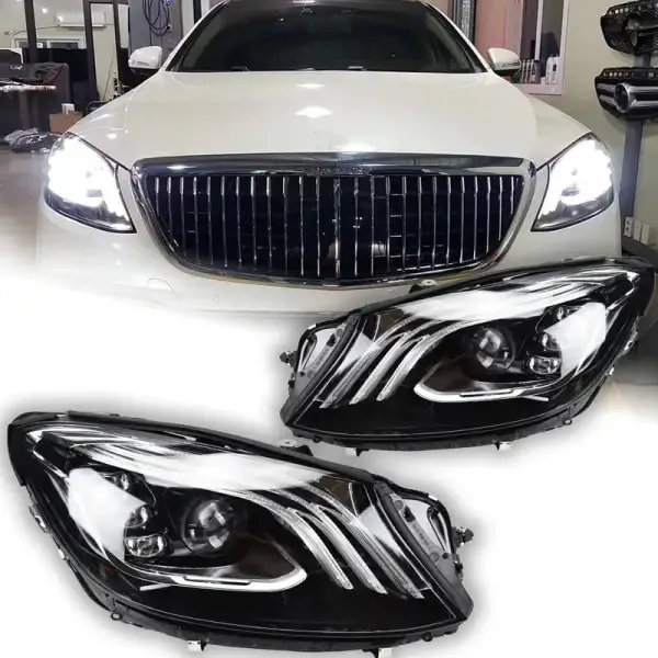 Upgraded Head Light Lamp Xenon Headlight Retrofit Upgrade Modified Led Drl Hid Maybach Style CC-5770 Compatible With Mercedes S Class W222 2014-2019