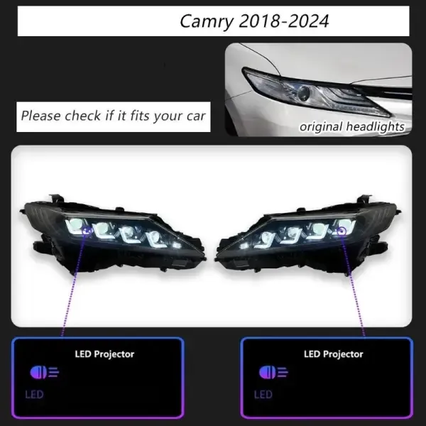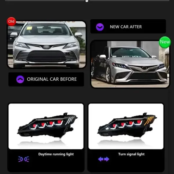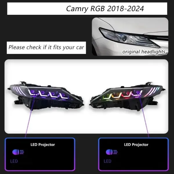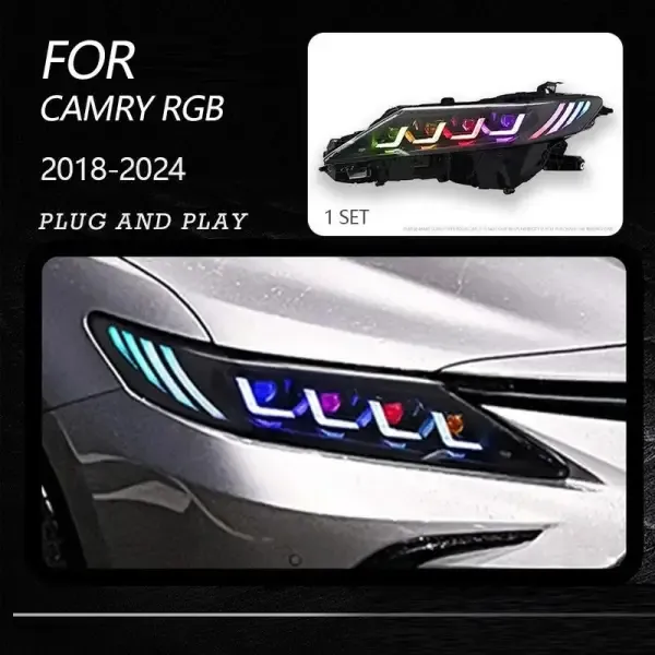 COMPATIBLE WITH TOYOTA CAMRY 2018-2024 8TH GENERATION CAR FRONT UPGRADED HEAD LIGHT LAMP XENON HEADLIGHT RETROFIT UPGRADE MODIFIED LED DRL HID RGB STYLE