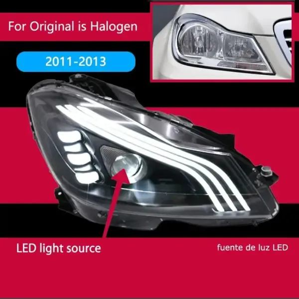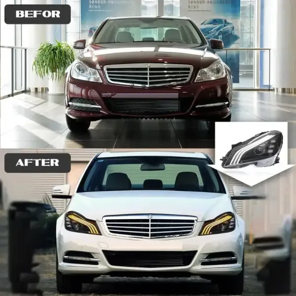 Upgraded Head Light Lamp Xenon Headlight Retrofit Upgrade Modified Led Drl Hid S Class Style CC-5756 Compatible With Mercedes Benz C Class W204 2007-2011