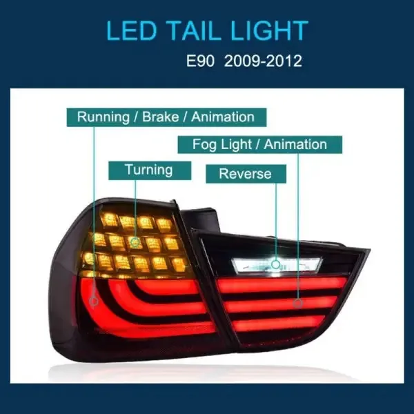 Upgraded Style Taillight Taillamp Red Smoke CC-5047 Compatible With Bmw 3 Series E90 Lci 2008-2012