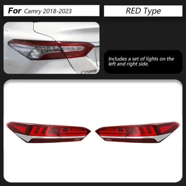 COMPATIBLE WITH TOYOTA CAMRY 2018-2024 8TH GENERATION CAR REAR UPGRADED TAIL LIGHT LAMP XENON TAILLIGHT RETROFIT UPGRADE MODIFIED LED DRL HID L STYLE RED