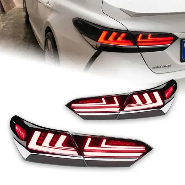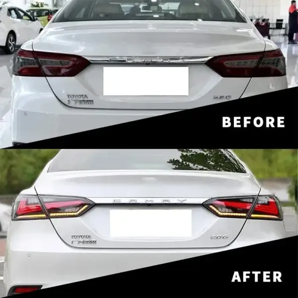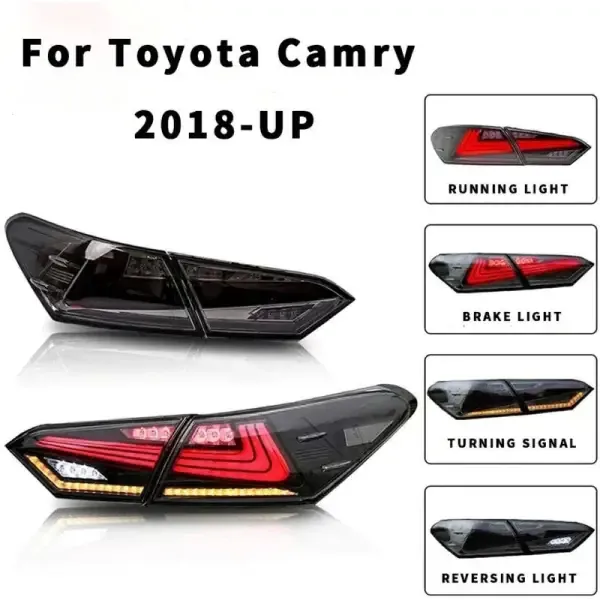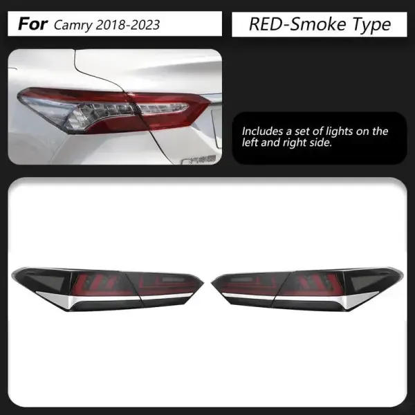 COMPATIBLE WITH TOYOTA CAMRY 2018-2024 8TH GENERATION CAR REAR UPGRADED TAIL LIGHT LAMP XENON TAILLIGHT RETROFIT UPGRADE MODIFIED LED DRL HID L STYLE RED SMOKE