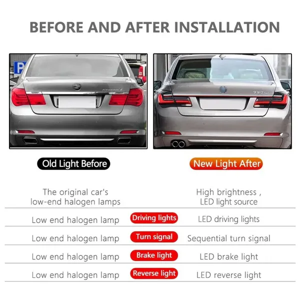 COMPATIBLE WITH BMW 7 SERIES F02 2009-2015 CAR REAR UPGRADED TAIL LIGHT LAMP XENON TAILLIGHT RETROFIT UPGRADE MODIFIED LED DRL HID LASER STYLE WITH CENTRE BAR