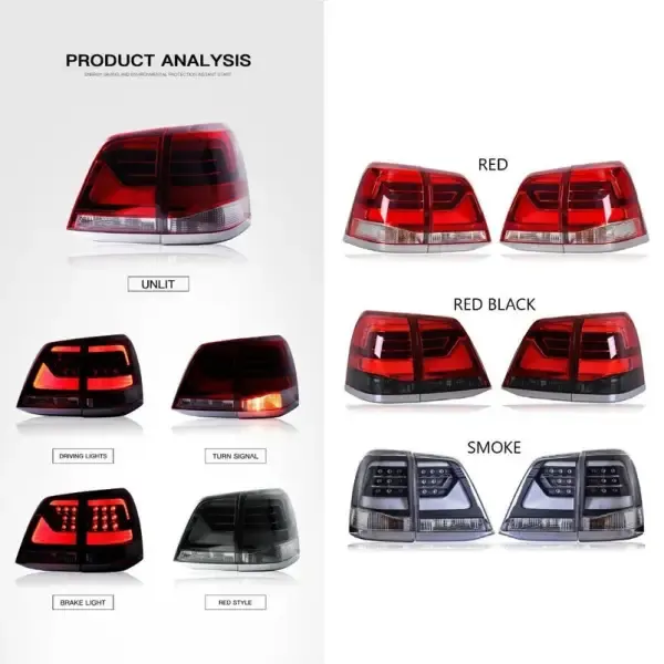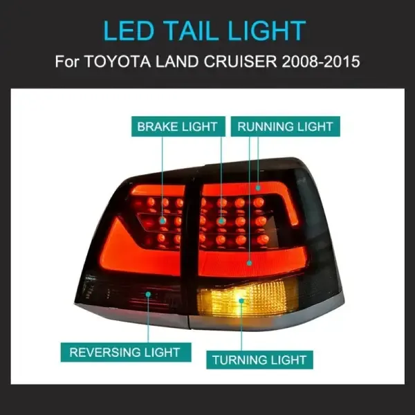 COMPATIBLE WITH TOYOTA LAND CRUISER LC200 2008-2015 UPGRADED TAIL LIGHT LAMP XENON TAILLIGHT RETROFIT UPGRADE MODIFIED LED DRL HID SMOKE