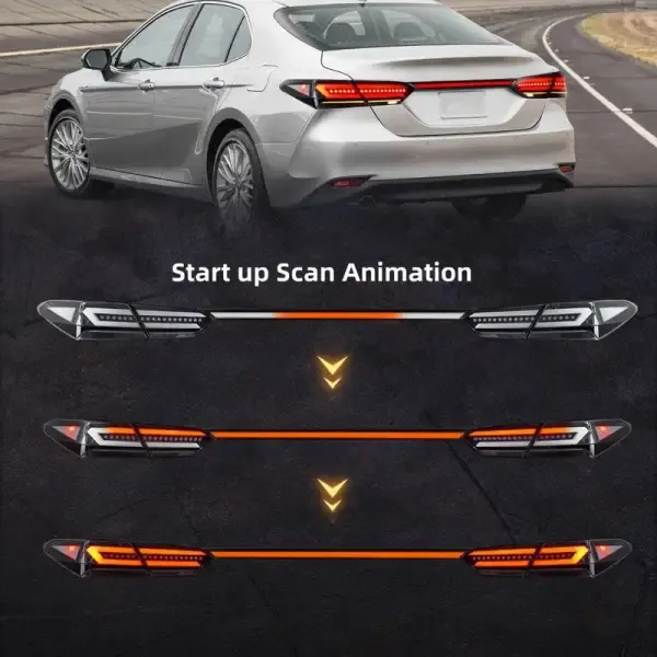 Upgraded Tail Light Lamp Xenon Taillight Retrofit Upgrade Modified Led Drl Hid With Centre Red CC-5623 Compatible With Toyota Camry 2018-2024 8th Generation