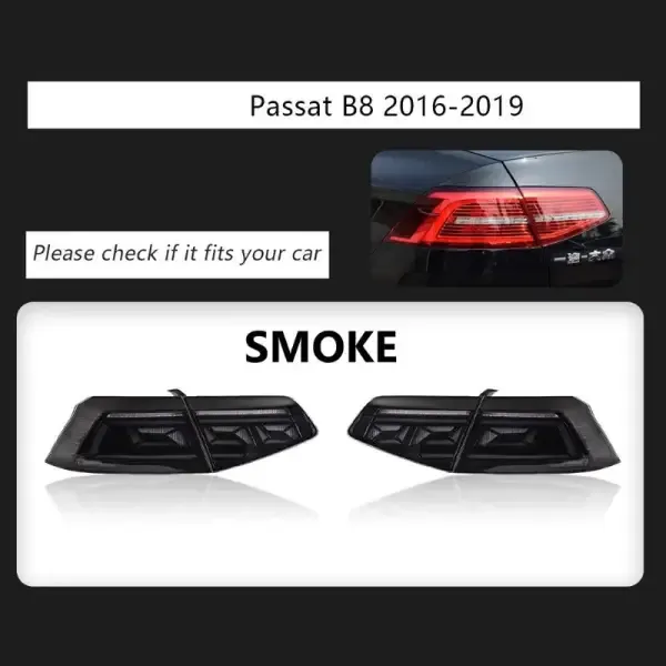 COMPATIBLE WITH VOLKSWAGEN VW PASSAT MOGOTAN B8 2015-2020 UPGRADED TAIL LIGHT LAMP XENON TAILLIGHT RETROFIT UPGRADE MODIFIED LED DRL HID XENON SMOKE