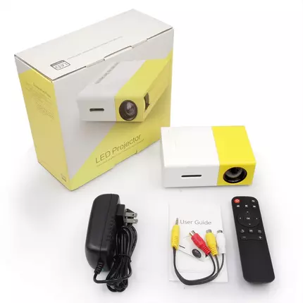 YG300 Mini Projector Audio YG-300 HD USB Mini Projector Support 1080P Home Media Specifications: Name: LED Projector Brightness: 400 lumens Contrast ratio: 800:1 Support: 920 x 108OP Operation mode: Manual operation Projection distance: 1-3 M Screen size: 24-60 inches Aspect ratio: 4:3/16:9 Color reproduction: 16.7k Input: USB/micro SD/HD-MI/AV Imaging technology: TFT LCD Unit size: 12.6 x 8.6 x 4.8 cm (4.7 x 34 x 1.9 Inches) Projector ratio: 1.6:1 Features Adjustable sharpness: it supports the adjustment of sharpness, and the roller focusing is simple and fast High quality: made of natural polyester fiber, the projection is clearer and brighter than most other projection screens, the projection screen is thicker and smoother, and does not wrinkle when folded/ crushed Easy to install: Use hooks, ropes, brackets, nails, double-sided tape to easily fix on the wall/bracket The best projection effect: the screen surface is white and the light is. When the ambient light can be adjusted, it shows the best projection effect. The light is evenly distributed and projected onto each display area. The color is natural and life-long, so it is not easy to fatigue Wide-angle viewing: no odor on the surface of the screen, long-term use will not fade, yellow, or deform, use special photosensitive materials, effectively prevent light scattering, wide viewing angle Package list: 1'LED Projector 1'Remote Control (NO BATTERY) 1'AV Cable 1User Manual 1'Power Adapter