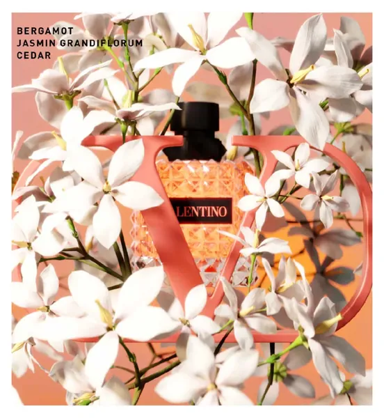 Born in Roma Donna Coral Fantasy is a floral fruity scent energized by colourful and zestystrawberry and bergamot. Blended with feminine Jasmine Grandiflorum, this fragrance reveals a bright contemporary femininity.