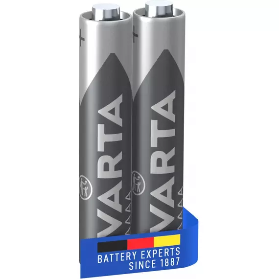 Features: VARTA AAAA, 8,2 mm diameter x 40,2 mm height with 1,5 V and alkaline technology for good energy performance Reliable power source and durability for everyday use in various devices such as surface pens, medical equipment, alarm systems, remote controls and much more Also known as MN2500, LR8D425 Specifications: Brand: Varta Battery Size: AAAA Qty: 2pcs