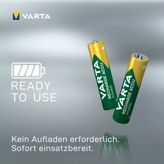 Varta rechargeable NiMH batteries are designed to lock in energy for long-term storage - charge them once and they'll still hold 75% of their capacity a year later. They come ready to use straight out of the pack as well. Specifications: Rechargeable NiMH batteries made in Germany Retains up to 75% capacity after 12 months of storage Pre-charged and ready to use from the pack Capacity: 800 mAh Size: AAA Pack of 4