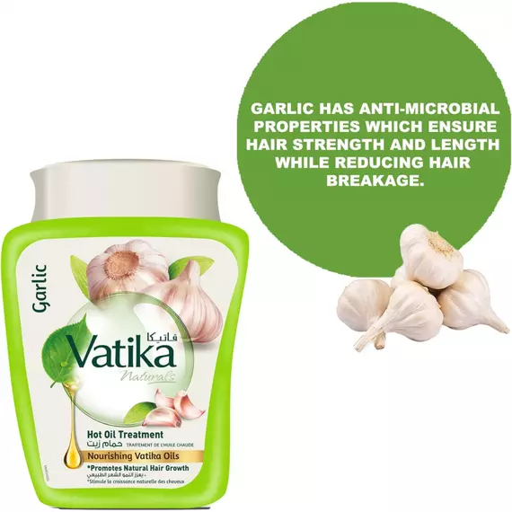 Discover the true herbal recipe for intensive hydration in Vatika Naturals Nourishing Hot Oil Treatment. Garlic is known to promote natural hair growth as it is a rich source of minerals and vitamins which are essential for both a healthy scalp and hair. Vatika Garlic Hammam Zaith along with other ingredients Fortifies hair strands to control hair breakage. It contains the goodness of Garlic that is a powerful ingredient known to promote natural hair growth