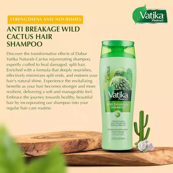 100% NATURAL INGREDIENTSIntroducing Dabur Vatika Naturals Shampoo, a natural moisturizing hair Shampoo suitable for all hair types. With variants like Argan, Sweet Almond, Coconut, Black Seed, Egg, Garlic, Cactus, Henna, Shikakai, Lemon and Olive, each formulated with 100% natural ingredients, this Shampoo nourishes and revitalizes hair effectively. Experience the benefits of repair, strength, hydration, revival, volume, reduced hair fall, frizz control, and deep conditioning with our diverse range. | NOURISHES AND MOISTURIZES HAIRDiscover the Dabur Vatika Naturals Shampoo, a hair care essential for all hair types. This nourishing and moisturizing formula revitalizes dry and damaged hair, leaving it soft and radiant. Suitable for long, curly, dry, or color-treated hair, this shampoo tames frizz, enhances natural texture, and preserves vibrant hair color. It also hydrates the scalp, promoting overall hair health. | UNIQUE FORMULAExperience the transformative power of Dabur Vatika Naturals Shampoo. This unique formula provides natural moisturization and nourishment for all hair types, leaving your locks vibrant and luscious. Enjoy the benefits of hydrated hair and a healthy scalp. Elevate your hair care routine with Dabur Vatika Naturals Shampoo and unlock the secret to beautiful, revitalized hair. |