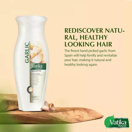 Vatika Garlic Shampoo is rich in anti-toxins that help cleanse hair follicles and promote natural hair growth. Garlic has been used since ancient times across the region and is well-known to promote natural hair growth and prevent breaking, falling and weak hair. Helps maintain natural hair growth. For weak and falling hair. With Spanish garlic.