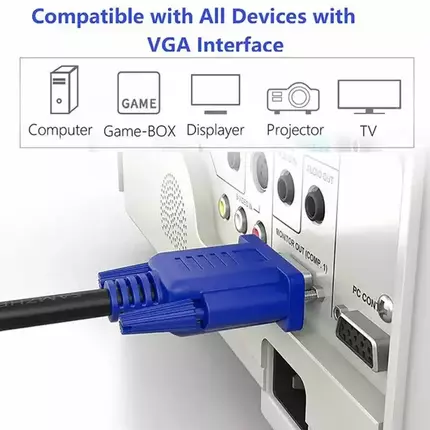 Description 1) high quality 2) Premium VGA cable with two high-density HD15 connectors (one male and one female) and two ferrites 3) This VGA cable connects PC or laptop to LCD monitor projector and other video display system through VGA connections. 4) Fully shielded VGA SVGA extension cable 5) Length: 1.5m