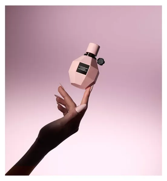 Viktor & Rolf revisited the iconic Flowerbomb bottle, pushed to overdose. Flowerbomb Extreme is the true quintessence of luxury. For such an unmatched and fearless floral explosion, the multi-faceted diamond-shaped bottle turns mat pink and is adorned with a bold, black Viktor&Rolf seal.