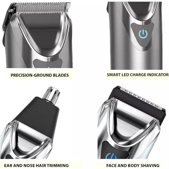 Highlights: Self-sharpening Precision-ground, Stainless Steel Blades for Superior Performance | Travel Lock Feature + Charging Indicator 3 Guide Combs and One 6 Position Adjustable Guide Comb for a Variety of Cutting Lengths | Ergonomic Grip Up to 6 Hr Run Time with 1 Min Quick Charge | 1 Min Quick Charge = 5 Min Use Lithium-Ion Rechargeable Trimmer | Performer Trimmer Blade (0.5mm) | Detailer Head Rotary Nose Trimmer Head | 3 Individual Guide Combs (1.5, 3, 4.5mm) | 6 Position Guide Comb (2-12mm) Charge Stand | Mustache Comb | Blade Oil | Cleaning Brush | 3 Pin Transformer | Storage Pouch | Instruction Manual Description: Wahl Trimmer | Lithium-Ion | Rechargeable | Nose Trimmer Head | 9818-727 Self-sharpening Precision-ground, Stainless Steel Blades for Superior Performance | Travel Lock Feature + Charging Indicator 3 Guide Combs and One 6 Position Adjustable Guide Comb for a Variety of Cutting Lengths | Ergonomic Grip Up to 6 Hr Run Time with 1 Min Quick Charge | 1 Min Quick Charge = 5 Min Use Includes Lithium-Ion Rechargeable Trimmer | Performer Trimmer Blade (0.5mm) | Detailer Head Rotary Nose Trimmer Head | 3 Individual Guide Combs (1.5, 3, 4.5mm) | 6 Position Guide Comb (2-12mm) Charge Stand | Mustache Comb | Blade Oil | Cleaning Brush | 3 Pin Transformer | Storage Pouch | Instruction Manual Technical Details: Unit Volume: 0.005 Unit Height: 0 Unit Width: 0 Color: Silver Key Feature 01: Self-sharpening Precision-ground, Stainless Steel Blades for Superior Performance | Travel Lock Feature + Charging Indicator Key Feature 02: 3 Guide Combs and One 6 Position Adjustable Guide Comb for a Variety of Cutting Lengths | Ergonomic Grip Key Feature 03: Up to 6 Hr Run Time with 1 Min Quick Charge | 1 Min Quick Charge = 5 Min Use Key Feature 04: Lithium-Ion Rechargeable Trimmer | Performer Trimmer Blade (0.5mm) | Detailer Head Key Feature 05: Rotary Nose Trimmer Head | 3 Individual Guide Combs (1.5, 3, 4.5mm) | 6 Position Guide Comb (2-12mm) Key Feature 06: Charge Stand | Mustache Comb | Blade Oil | Cleaning Brush | 3 Pin Transformer | Storage Pouch | Instruction Manual