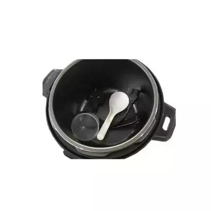 The rice cooker comes with a measuring cup for perfect rice-to-water ratio and a rice spoon for easy serving.