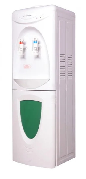 The Westpoint WFC3000 is a stylish white water dispenser with a bottom fridge compartment, providing instant hot and cold water for home or office use.