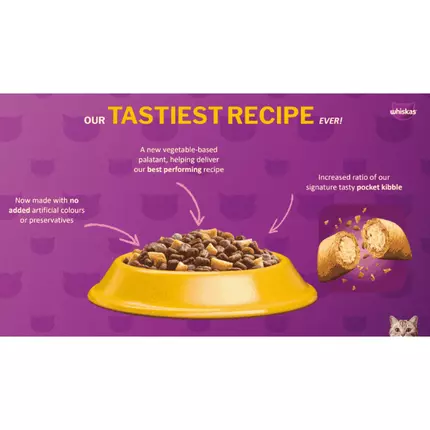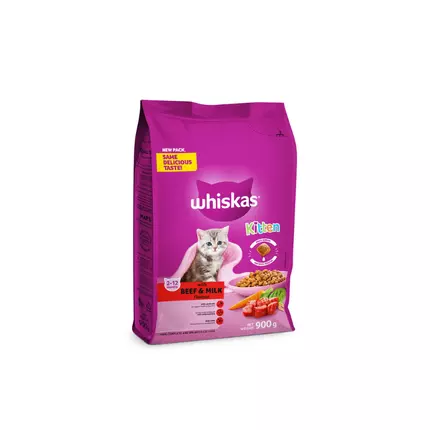 Our tasty Whiskas Kitten Beef kibbles are carefully prepared to give your kitten all the nutrients they need as they grow and explore their new world! Made with high quality ingredients that are sourced only from trusted suppliers, each delicious recipe provides the purrfect balance of vitamins and minerals to keep them happy, healthy & running to the bowl every mealtime.