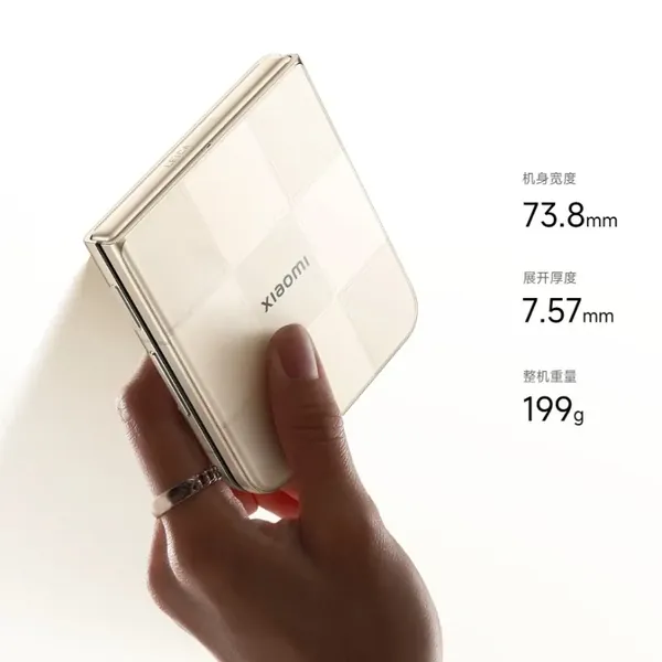 Xiaomi Mix Flip 2 features a foldable design, the outer display is a 3.26 inch AMOLED display. While the internal primary panel is a 6.8 inch E6 AMOLED 120Hz display.