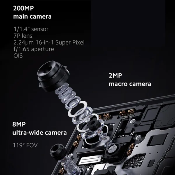 - >Camera——-200MP+8MP+2MP OIS rear camera ,16MP front camera,