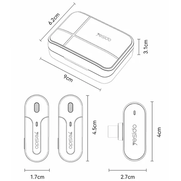 YESIDO KR17 Lavalier Microphone System with Charging Case, 2 Transmitter+1 Receiver